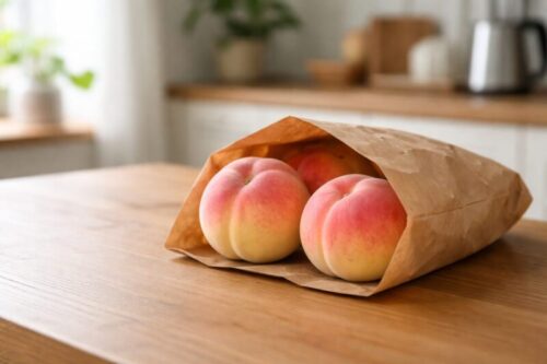 • 硬い桃は紙袋や新聞紙で包み、常温で置いておくと自然に追熟します。リンゴやバナナと一緒に置くとエチレン効果で追熟が早まる一方、過剰に入れると一晩で熟しすぎることもあるため注意しましょう。