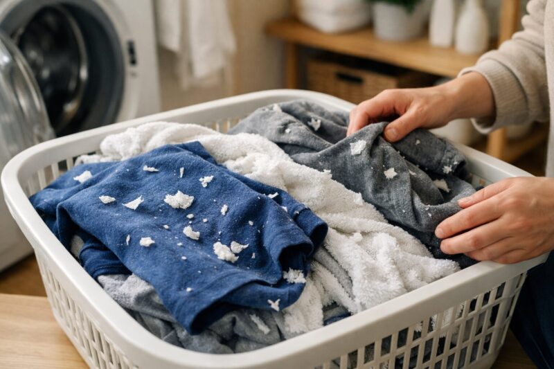 しかし、ここで慌てる必要はありません。ティッシュを洗濯してしまっても、正しい手順で対処すれば服も洗濯機もきれいに元通りにできます。逆に、間違った対処をすると繊維が絡みついて余計に取れにくくなることもあります。本記事では、洗濯直後の対応から再洗いのコツ、乾いてしまった場合の対処法まで、ティッシュを洗濯してしまった時の対処法を順を追って分かりやすく解説します。
