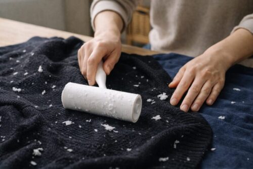 黒い服やニット素材は白いティッシュが目立ちやすいため、コロコロを使うと見た目が一気に改善します。掃除機を使う場合は、生地を傷めないよう必ず弱モードにしましょう。